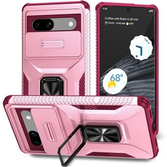 For Google Pixel 7a Sliding Camshield Holder Phone Case(Pink + Rose Red)