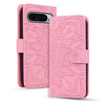 For Google Pixel 9 / 9 Pro Mandala Embossed Dual-Fold Calf Leather Phone Case(Pink)