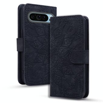 For Google Pixel 9 Pro XL Mandala Embossed Dual-Fold Calf Leather Phone Case(Black)