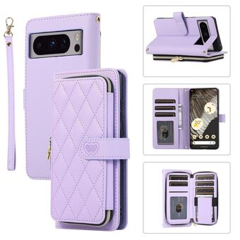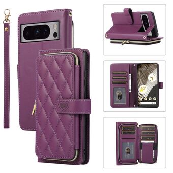 Για το Google Pixel 8 Pro Rhombic Πλήρης φερμουάρ πορτοφόλι δερμάτινη θήκη τηλεφώνου (μωβ)