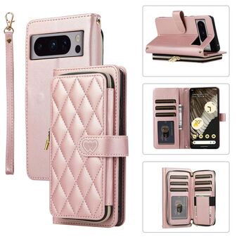 Για το Google Pixel 8 Pro Rhombic Πλήρης φερμουάρ πορτοφόλι δερμάτινη θήκη τηλεφώνου (ροζ χρυσό)
