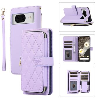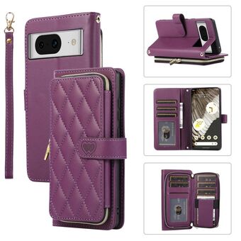 Για το Google Pixel 8 Rhombic Πλήρης φερμουάρ πορτοφόλι δερμάτινη θήκη τηλεφώνου (μωβ)
