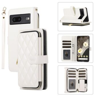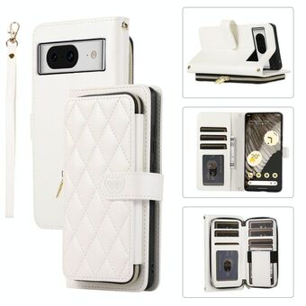 Για το Google Pixel 8 Rhombic Full φερμουάρ Wallet Δερμάτινη θήκη τηλεφώνου (λευκό)
