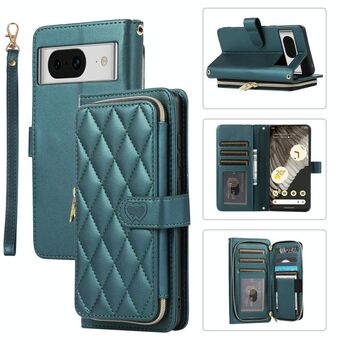 Για το Google Pixel 8 Rhombic πλήρη φερμουάρ πορτοφόλι δερμάτινη θήκη τηλεφώνου (πράσινο)
