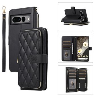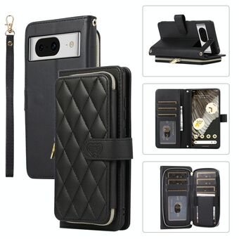 Για το Google Pixel 8 Rhombic Full φερμουάρ Wallet Δερμάτινη θήκη τηλεφώνου (μαύρο)