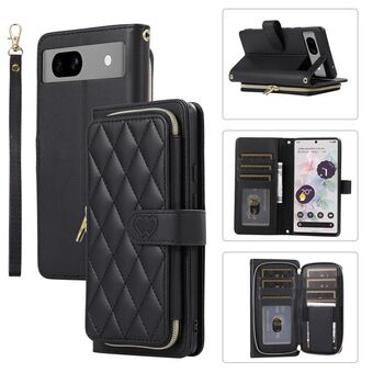 Για το Google Pixel 8a Ρομβοειδής πλήρης φερμουάρ πορτοφόλι δερμάτινη θήκη τηλεφώνου (μαύρο)