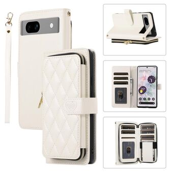 Για το Google Pixel 7a Rhombic Πλήρης φερμουάρ πορτοφόλι δερμάτινη θήκη τηλεφώνου (λευκό)