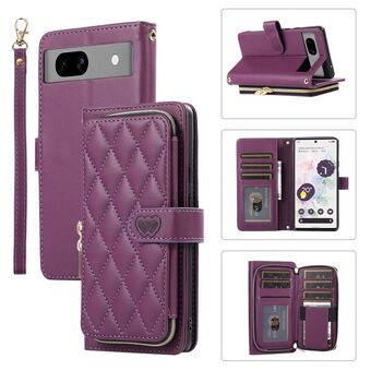 Για Google Pixel 7a Rhombic Πλήρης φερμουάρ πορτοφόλι δερμάτινη θήκη τηλεφώνου (μωβ)