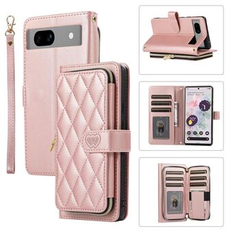 Για το Google Pixel 7a Ρομβοειδής πλήρης φερμουάρ πορτοφόλι δερμάτινη θήκη τηλεφώνου (ροζ χρυσό)