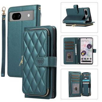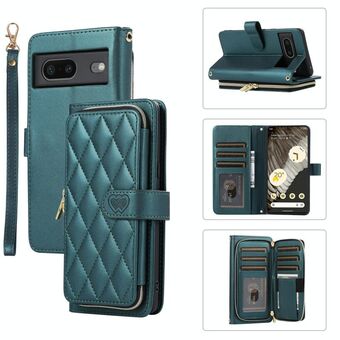 Για το Google Pixel 7a Ρομβοειδής πλήρης φερμουάρ πορτοφόλι δερμάτινη θήκη τηλεφώνου (πράσινο)