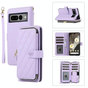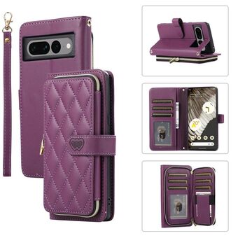 Για το Google Pixel 7 Pro Rhombic Πλήρης φερμουάρ πορτοφόλι δερμάτινη θήκη τηλεφώνου (μωβ)