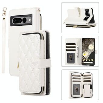Για το Google Pixel 7 Pro Rhombic Full φερμουάρ πορτοφόλι δερμάτινη θήκη τηλεφώνου (λευκό)