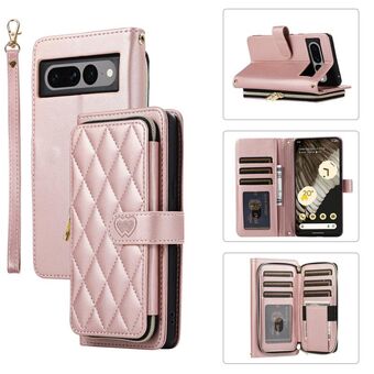 Για το Google Pixel 7 Rhombic πλήρη φερμουάρ πορτοφόλι δερμάτινη θήκη τηλεφώνου (Rose Gold)