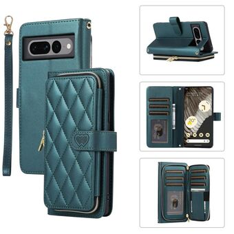 Για το Google Pixel 7 Pro Rhombic Πλήρης φερμουάρ πορτοφόλι δερμάτινη θήκη τηλεφώνου (πράσινο)