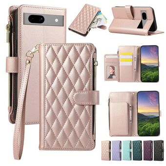 Για το Google Pixel 7a Ρομβοειδές φερμουάρ πορτοφόλι δερμάτινη θήκη τηλεφώνου (ροζ χρυσό)