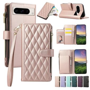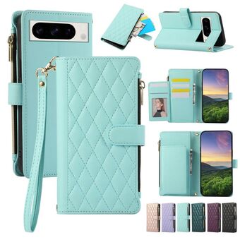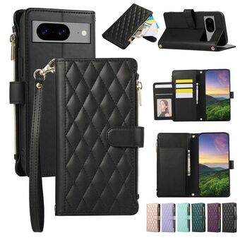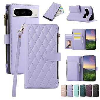 Για το Google Pixel 8 Ρομβοειδές φερμουάρ πορτοφόλι δερμάτινη θήκη τηλεφώνου (μωβ)