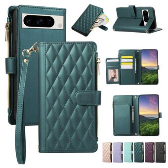 Για το Google Pixel 8 Ρομβική φερμουάρ πορτοφόλι δερμάτινη θήκη τηλεφώνου (πράσινο)