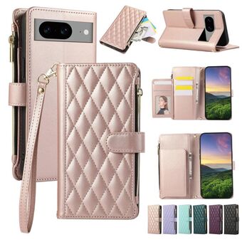 Για το Google Pixel 8 Ρομβοειδές φερμουάρ πορτοφόλι δερμάτινη θήκη τηλεφώνου (ροζ χρυσό)