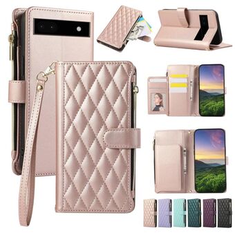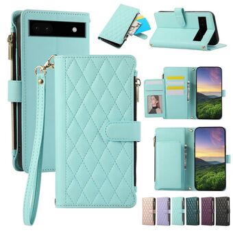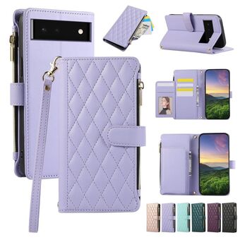 Για το Google Pixel 6a Ρομβοειδές φερμουάρ πορτοφόλι δερμάτινη θήκη τηλεφώνου (μωβ)