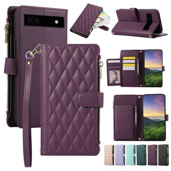 Για το Google Pixel 6 Ρομβοειδές φερμουάρ πορτοφόλι δερμάτινη θήκη τηλεφώνου (μωβ)