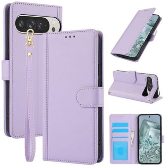 Για το Google Pixel 9 Pro XL Skin Feel Pure Color Card Slots δερμάτινη θήκη τηλεφώνου με διπλό κορδόνι (μοβ)