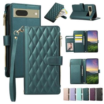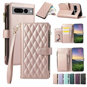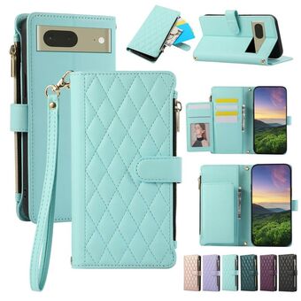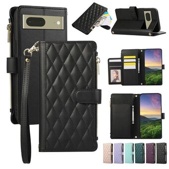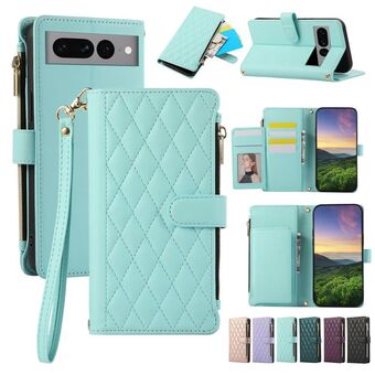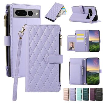 Για το Google Pixel 7 Ρομβική φερμουάρ πορτοφόλι δερμάτινη θήκη τηλεφώνου (μωβ)