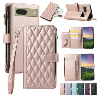 Για το Google Pixel 7 Ρομβική φερμουάρ πορτοφόλι δερμάτινη θήκη τηλεφώνου (ροζ χρυσό)