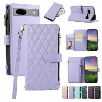 Για το Google Pixel 7a Ρομβοειδές φερμουάρ πορτοφόλι δερμάτινη θήκη τηλεφώνου (μωβ)