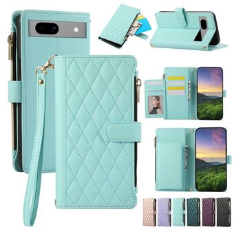 Για το Google Pixel 7a Ρομβοειδές φερμουάρ πορτοφόλι δερμάτινη θήκη τηλεφώνου (κυανό)