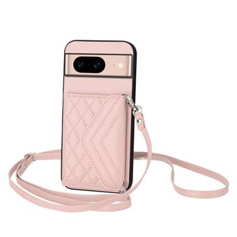 Για το Google Pixel 8 Rhombic Texture Card Bag RFID υπόθεση τηλεφώνου με μακρύ κορδόνι (ροζ χρυσό)
