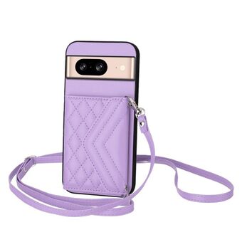 Για το Google Pixel 8 Rhombic Texture Card Bag RFID υπόθεση τηλεφώνου με μακρύ κορδόνι (Light Purple)