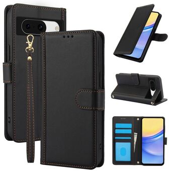 Για το Google Pixel 8a Skin Feel Pure Color Card Slots δερμάτινη θήκη τηλεφώνου με διπλή κορδόνι (μαύρο)