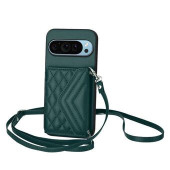 Για το Google Pixel 9 / 9 Pro Rhombic Texture Card Bag RFID υπόθεση τηλεφώνου με μακρύ κορδόνι (Πράσινο)