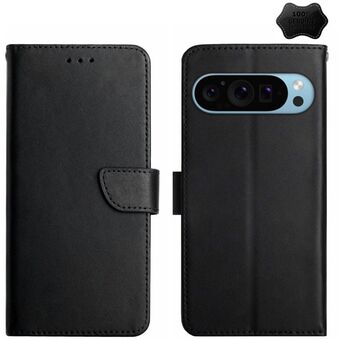 For Google Pixel 9 Pro HT02 Genuine Leather Fingerprint-proof Flip Phone Case(Black)