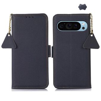 For Google Pixel 9 Side-Magnetic TJ Genuine Leather RFID Phone Case(Black)
