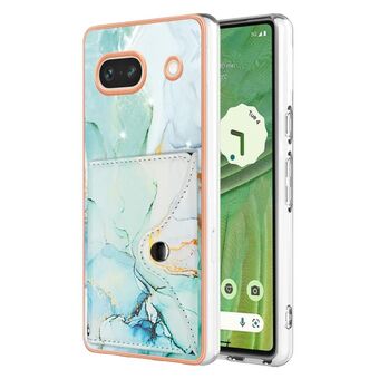 For Google Pixel 7a Marble Pattern IMD Card Slot Phone Case(Green)