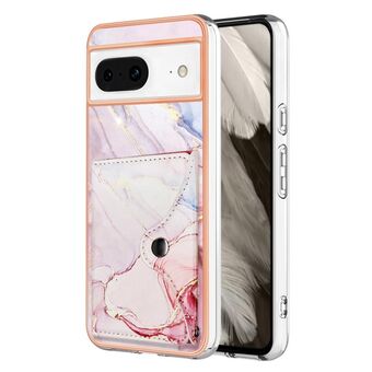 For Google Pixel 8 Marble Pattern IMD Card Slot Phone Case(Pink Purple Gold)