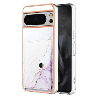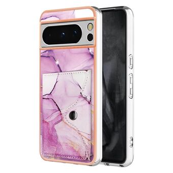 For Google Pixel 8 Pro Marble Pattern IMD Card Slot Phone Case(Pink Purple Gold)