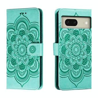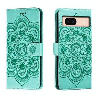 Για το Google Pixel 8 Sun Mandala ανάγλυφο μοτίβο τηλέφωνο δερμάτινη θήκη (πράσινο)