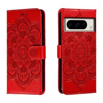 Για το Google Pixel 8 Pro Sun Mandala ανάγλυφο μοτίβο τηλέφωνο δερμάτινη θήκη (κόκκινο)