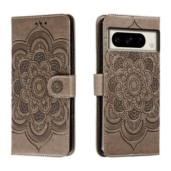 Για το Google Pixel 8 Pro Sun Mandala ανάγλυφο μοτίβο τηλέφωνο δερμάτινη θήκη (γκρι)