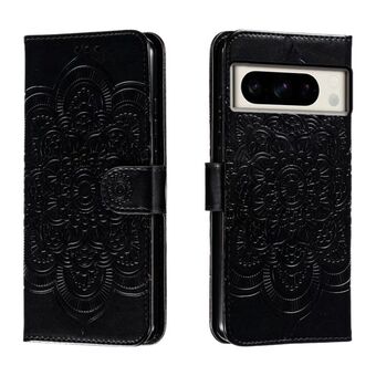 Για το Google Pixel 8 Pro Sun Mandala ανάγλυφο μοτίβο τηλέφωνο δερμάτινη θήκη (μαύρο)