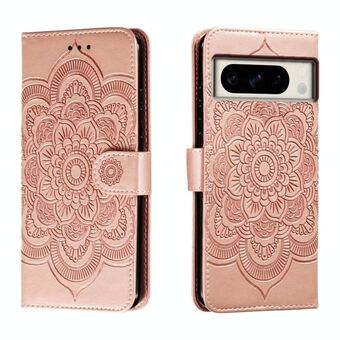 Για το Google Pixel 8 Pro Sun Mandala ανάγλυφο μοτίβο τηλέφωνο δερμάτινη θήκη (Rose Gold)
