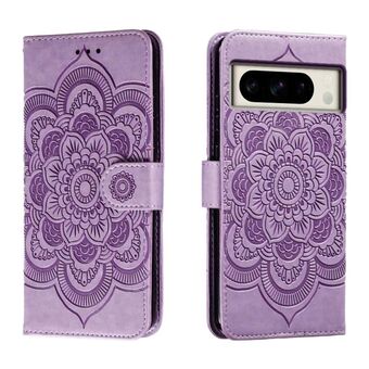 Για το Google Pixel 8 Pro Sun Mandala ανάγλυφο μοτίβο τηλέφωνο δερμάτινη θήκη (μωβ)