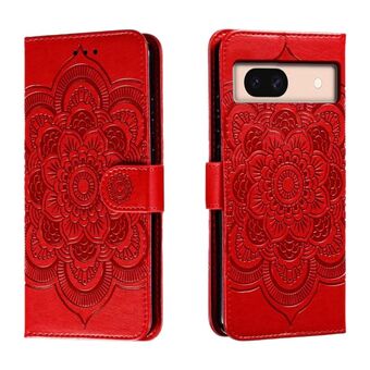 Για το Google Pixel 8A Sun Mandala ανάγλυφο μοτίβο τηλέφωνο δερμάτινη θήκη (κόκκινο)
