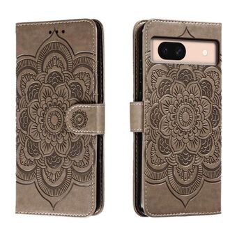Για το Google Pixel 8A Sun Mandala ανάγλυφο μοτίβο τηλέφωνο δερμάτινη θήκη (γκρι)