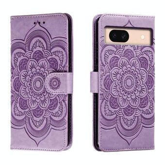 Για το Google Pixel 8A Sun Mandala ανάγλυφο μοτίβο τηλέφωνο δερμάτινη θήκη (μωβ)