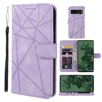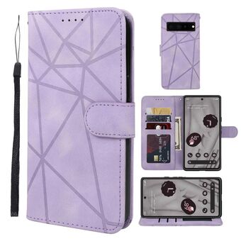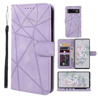 Για το Google Pixel 6a Skin Feel Γεωμετρικές γραμμές δερμάτινη θήκη τηλεφώνου (μωβ)