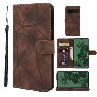 Για το Google Pixel 7a Skin Feel Γεωμετρικές γραμμές δερμάτινη θήκη τηλεφώνου (καφέ)