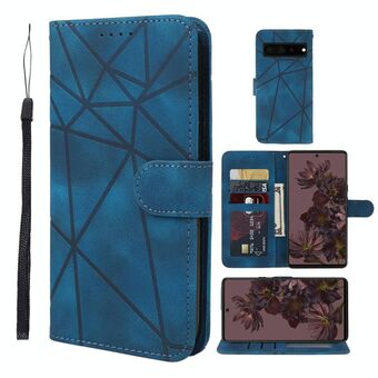Για το Google Pixel 7 Pro Skin Feel Γεωμετρικές γραμμές δερμάτινη θήκη τηλεφώνου (μπλε)